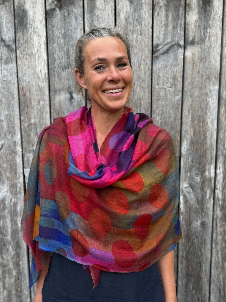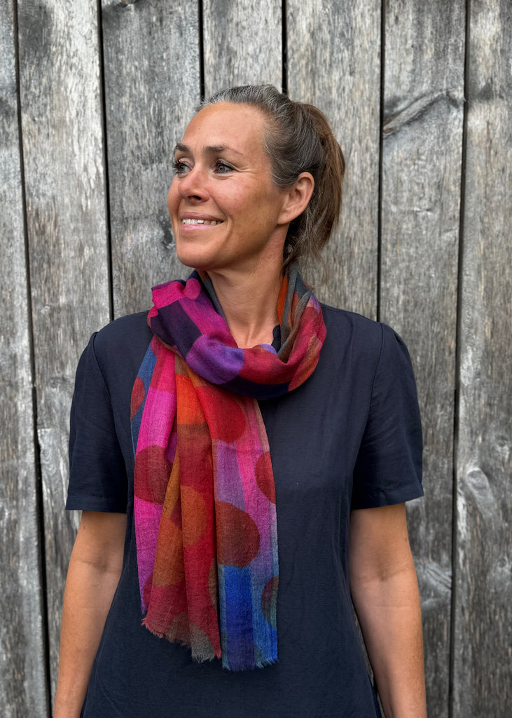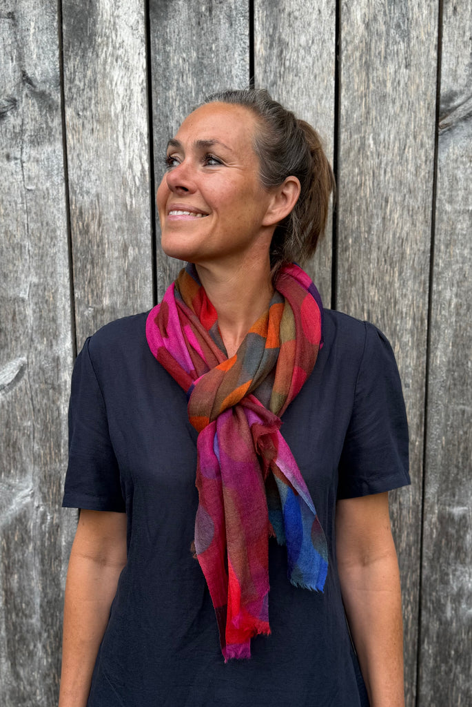 Dette nydelige florlette skjerfet kan du velge om du vil fronte de lillarosa fargene, eller om du vil gå for de grønnoransje fargene. Derfor passer dette skjerfet til de aller fleste. Fantastisk kvalitet! 100% ull, 70x180 cm.
